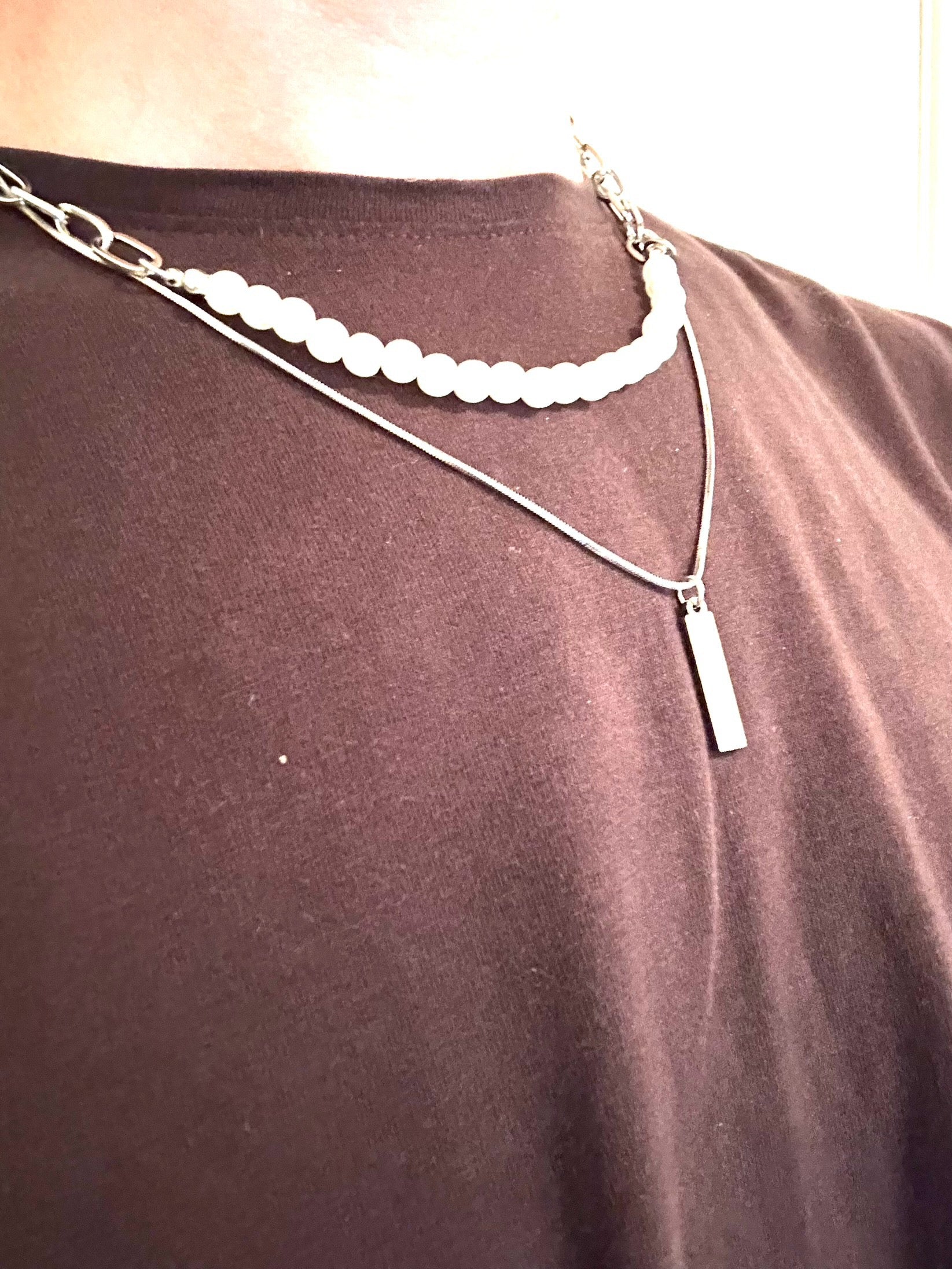 統一と調和を象徴する日本風のネックレス コレクション。「絆」または「つながり」。人、物、自然とのつながりを意味します。このネックレスは文化 (真珠) と強さ (ステンレス スチール) を結びつけ、統一を強調します.